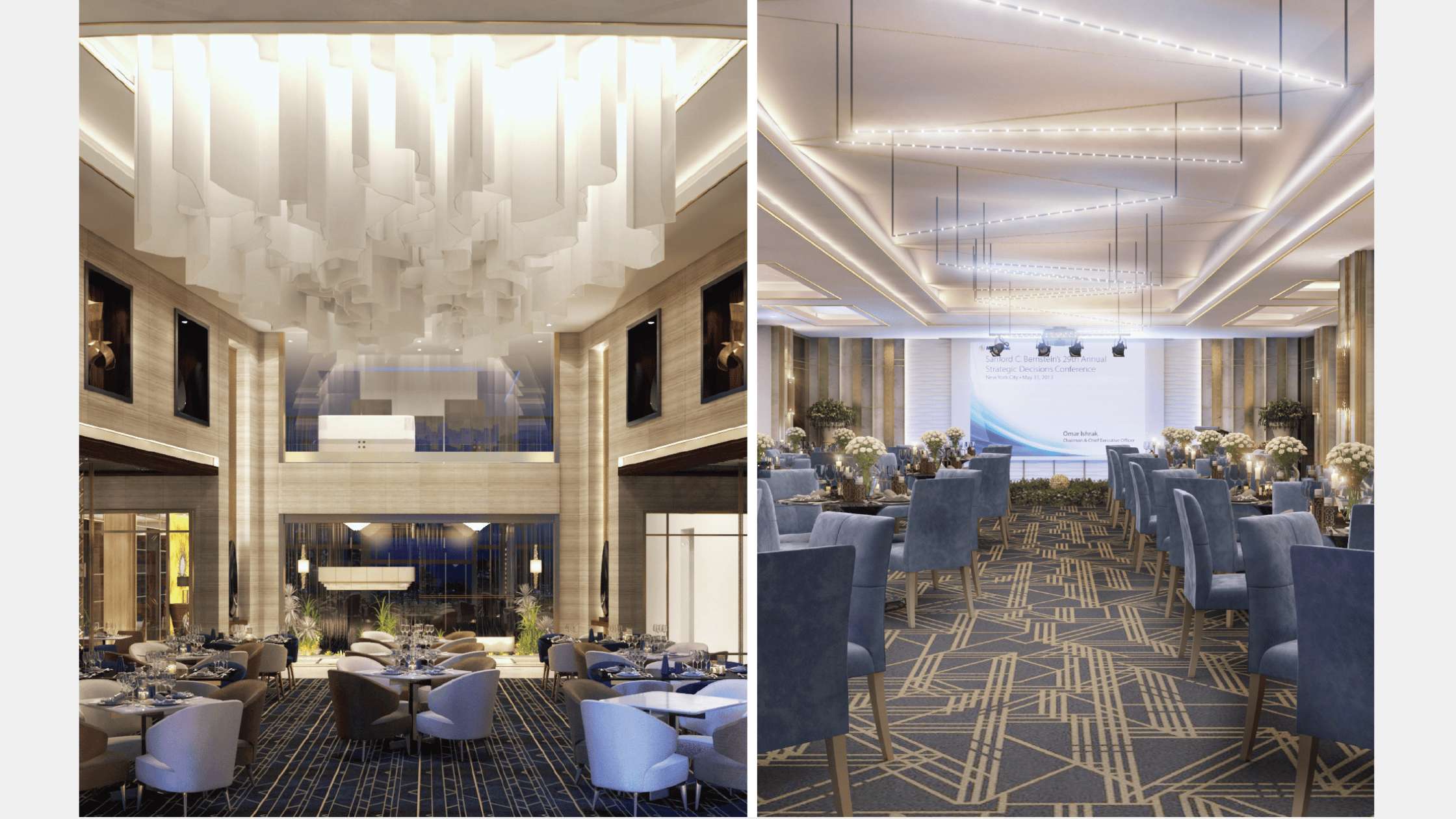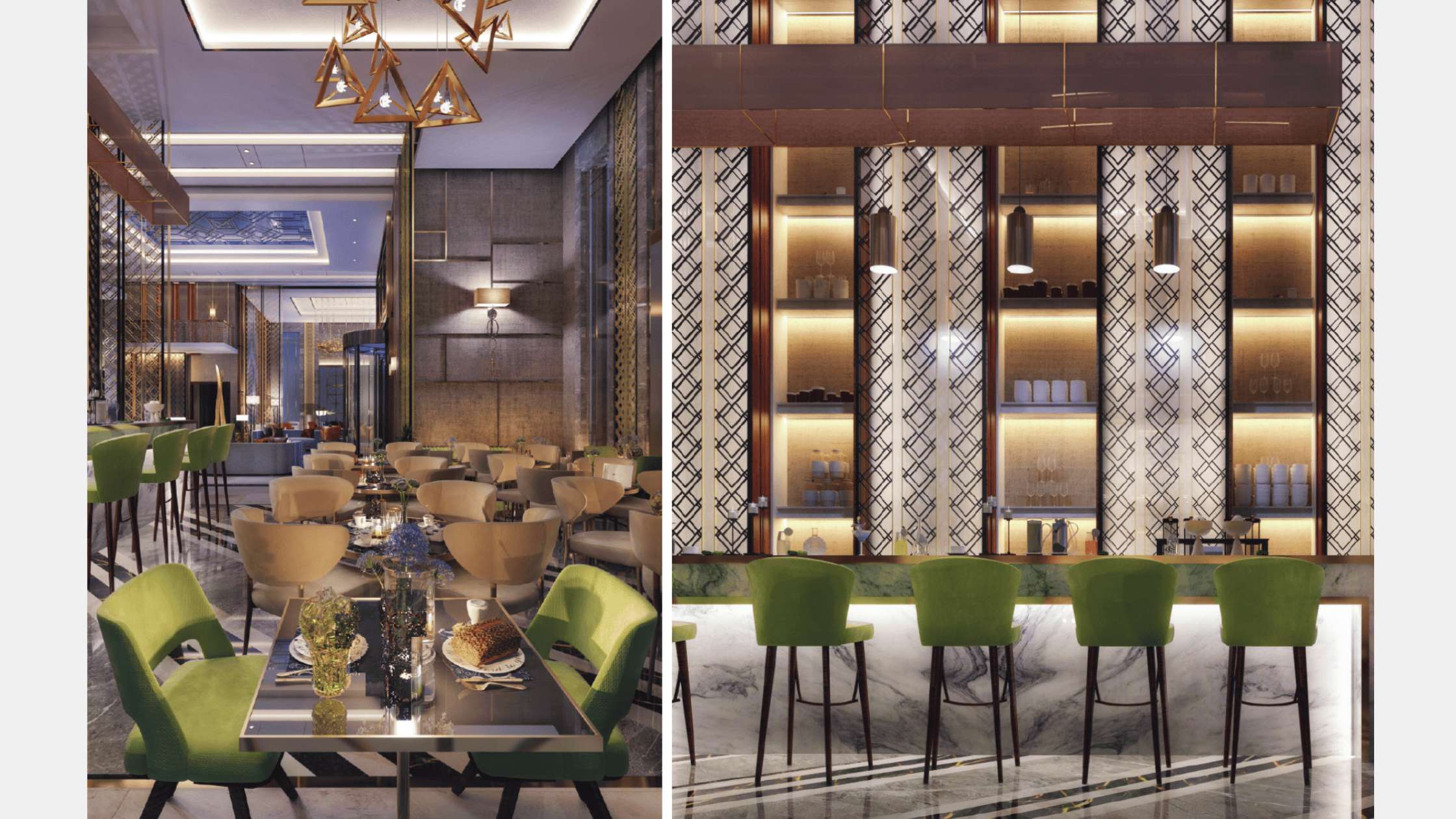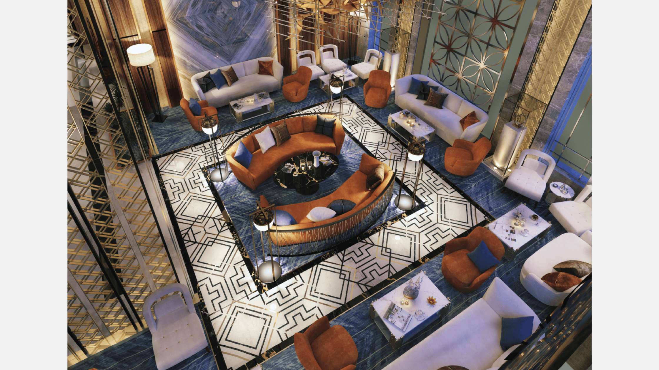 The design aims to make a complete transformation of the current project to create a new identity of the meeting hall that achieve luxury, Comfort, and a sense of justice. We suggest two proposals in two different directions and styles that regard all the current design considerations and factors.