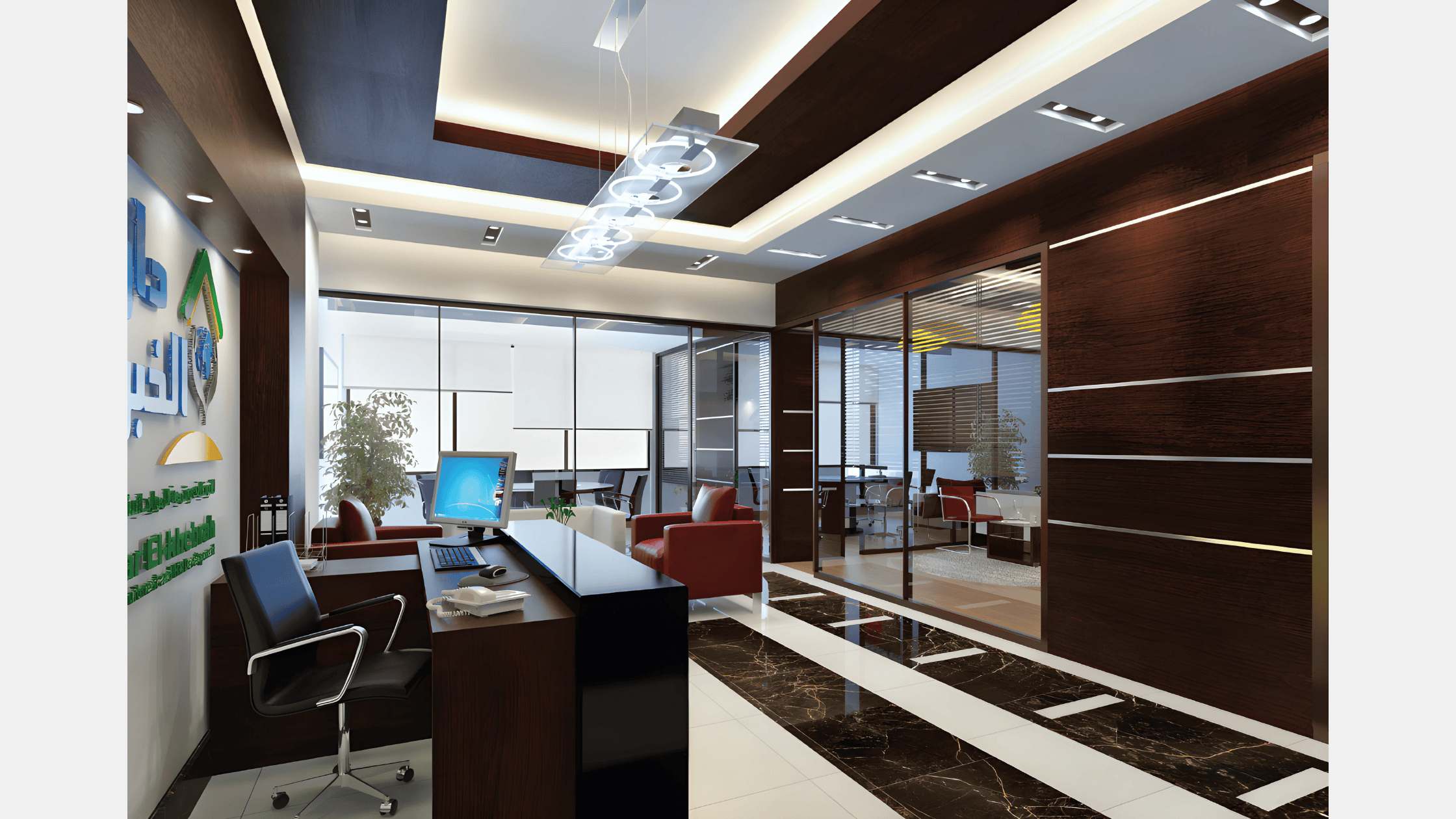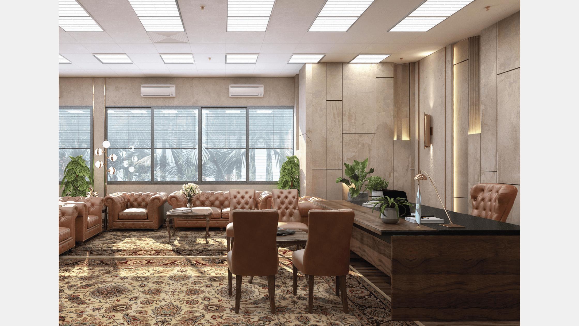 Eastern company head office design scope aimed to renovate the main office in a way that is very easy to be constructed and renovated. The main office has a lot of functions and uses between the main office desk and meeting zones and lounge with using luxury materials and cladding. Our main concept is to create a remarkable cabinet as an internal Pavillion for the products of the company in a way that will be suitable for different kinds of exhibits.