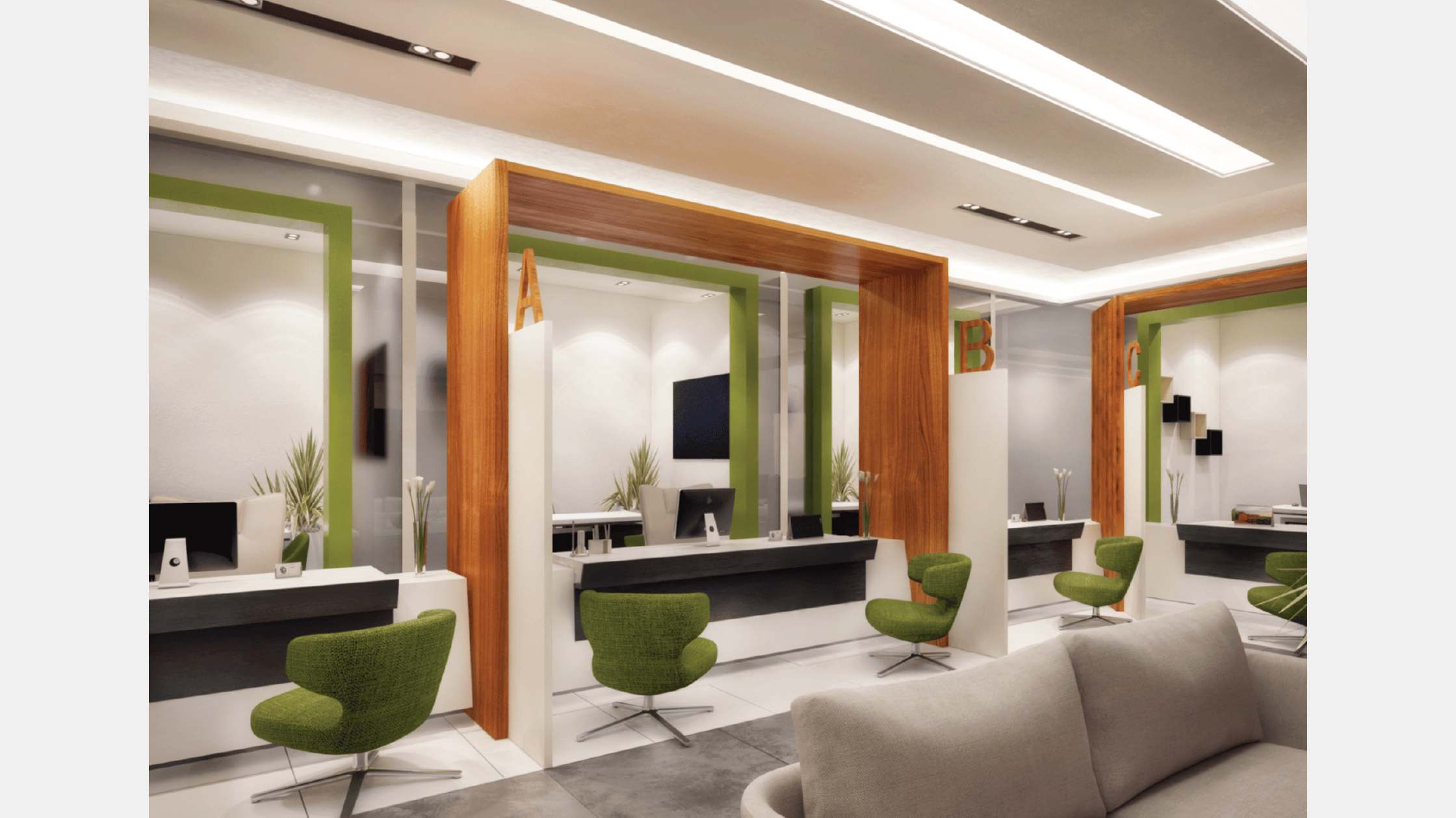 The project consists of the ground and mezzanine floor for retails and commercial spaces and provides the upper floors for the administration functions. So our main challenge is to make the interior design of the entrance catchy from the outside boulevard and reflects its function. Our design criteria are to create unordinary spaces with comfortable materials and lines and in harmony with the exterior design of the project.